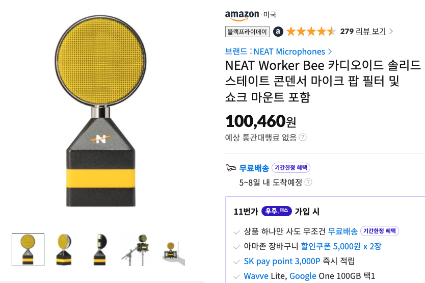처음 이 마이크를 발견했을 때 해외 가격이 100달러 언저리의 가격이었습니다. (세일하면 90달러 정도)